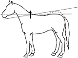 | キ甲よりもお尻が高い馬は、今後キ甲が伸びる成長が期待できる。ゆくゆくはキ甲の高さとお尻の高さを線で結ぶと水平になる。 |