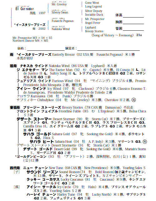 | •ƒEl Corredor@•êƒC[ƒXƒ^ƒŠ[ƒuƒŠ[ƒYi•ꕃFusaichi Pegasusj |