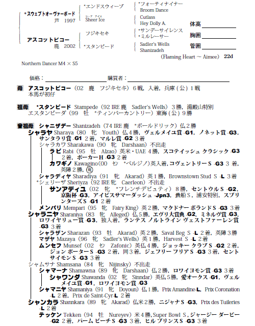 父スウェプトオーヴァーボード 母アスコットビコー(母父フジキセキ)