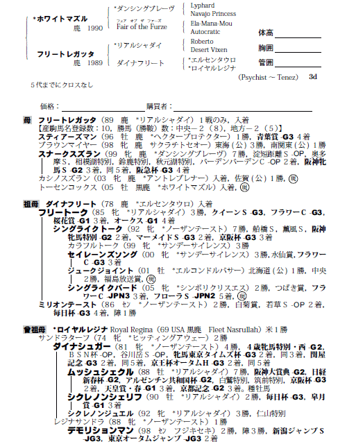 父ホワイトマズル 母フリートレガッタ(母父リアルシヤダイ)