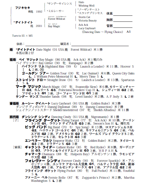 父フジキセキ 母デイトナイト(母父Forest Wildcat)