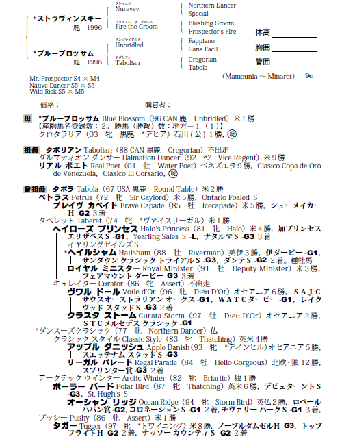 父ストラヴィンスキー 母ブルーブロッサム(母父Unbridled)