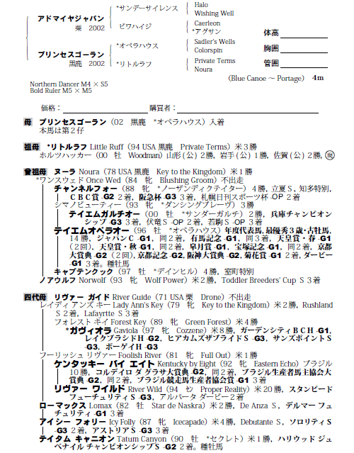 父アドマイヤジャパン 母プリンセスゴーラン(母父オペラハウス)