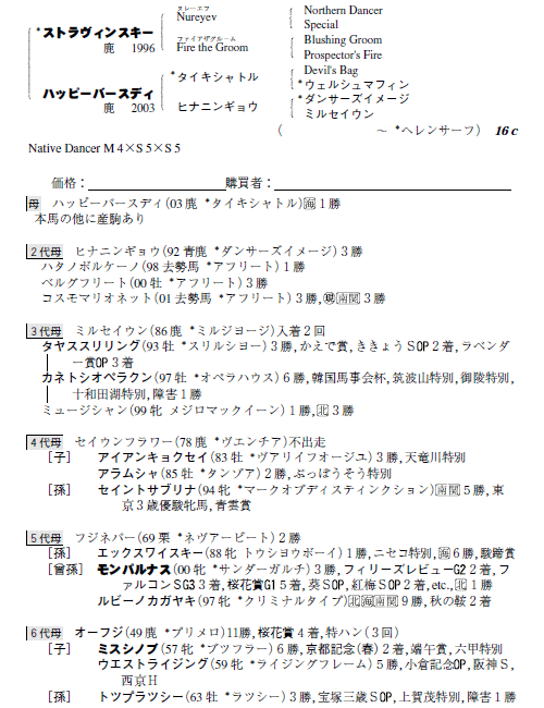 父ストラヴィンスキー 母ハッピーバースディ(母父タイキシャトル)