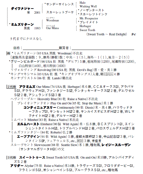 父ダイワメジャー 母ミムズリターン(母父Woodman)