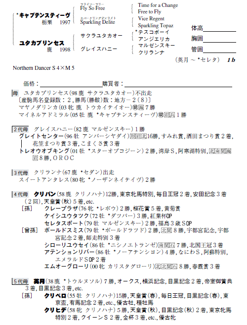 父キャプテンスティーヴ 母ユタカプリンセス(母父サクラユタカオー)