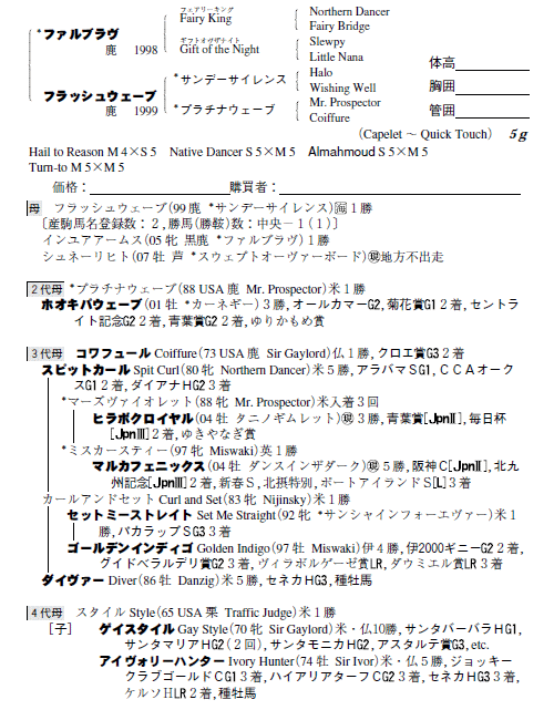 父ファルブラヴ 母フラッシュウェーブ(母父サンデーサイレンス)