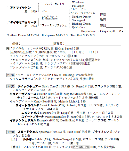 父アドマイヤドン 母タイキセニョリータ(母父El Gran Senor)