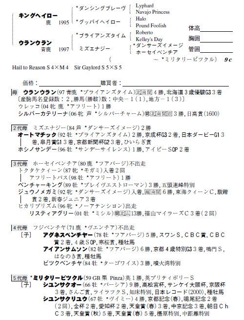 父キングヘイロー 母ウランウラン(母父ブライアンズタイム)