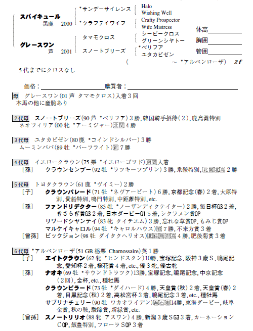 父スパイキュール 母グレースワン(母父タマモクロス)