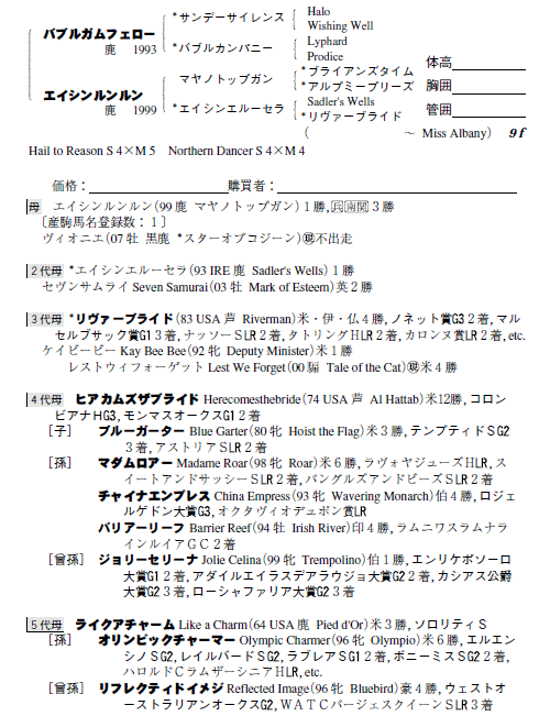 父バブルガムフェロー 母エイシンルンルン (母父マヤノトップガン)
