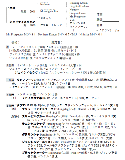 | 父バゴ 母ジェイケイスキャン(母父スキャン) |