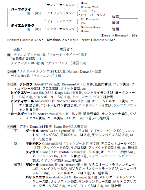 父ハーツクライ 母テイエムダルク(母父フォーティナイナー)