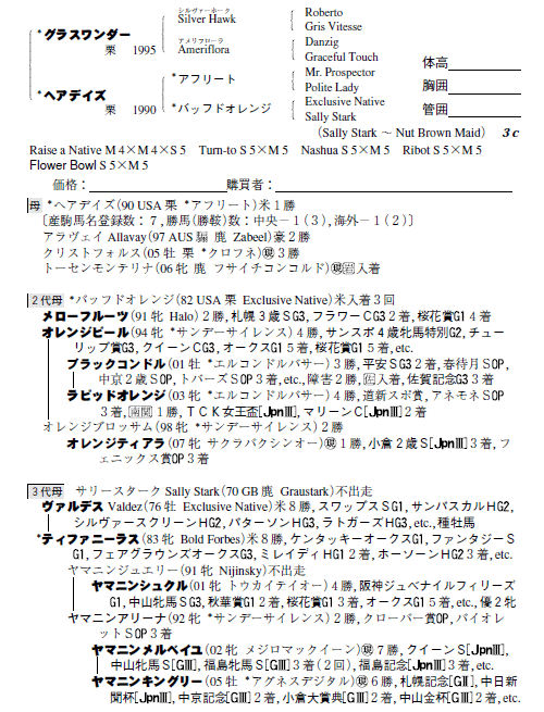 | 父グラスワンダー 母ヘアデイズ(母父アフリート ) |