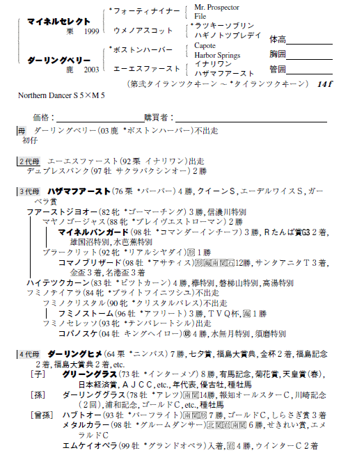 父マイネルセレクト 母ダーリングベリー(母父ボストンハーバー)