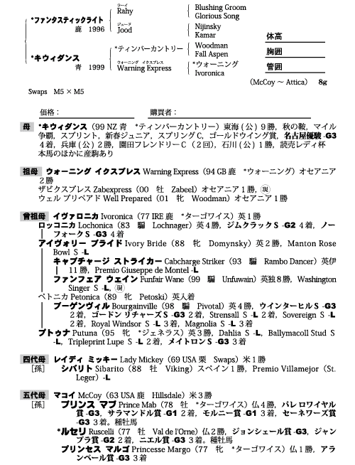 父ファンタスティックライト 母キウィダンス(母父ティンバーカントリー)