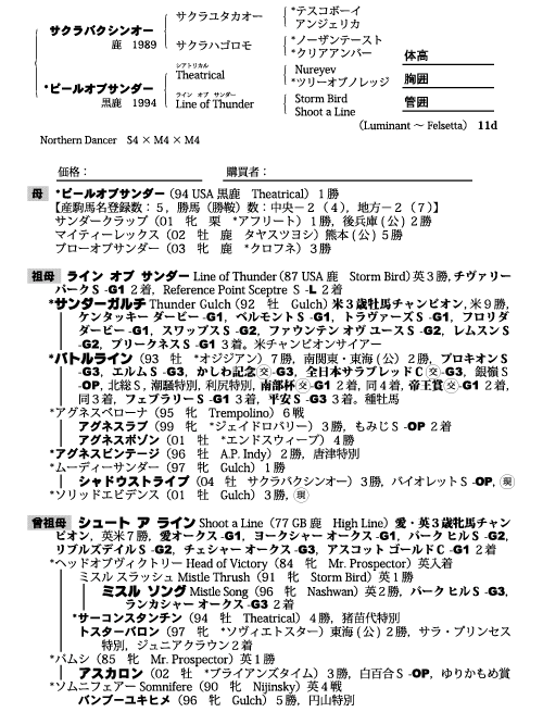 父サクラバクシンオー 母ピールオブサンダー(母父Theatrical)