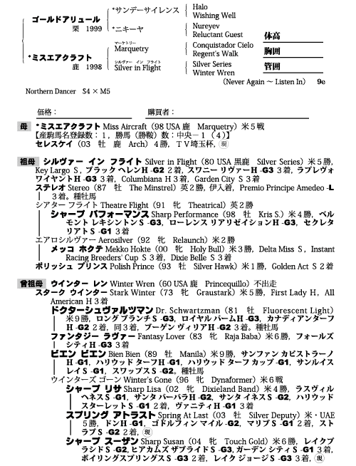 | 父ゴールドアリュール 母ミスエアクラフト(母父Marquetry) |