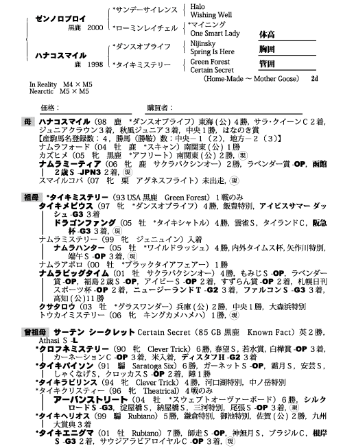 父ゼンノロブロイ 母ハナコスマイル(母父ダンスオブライフ)