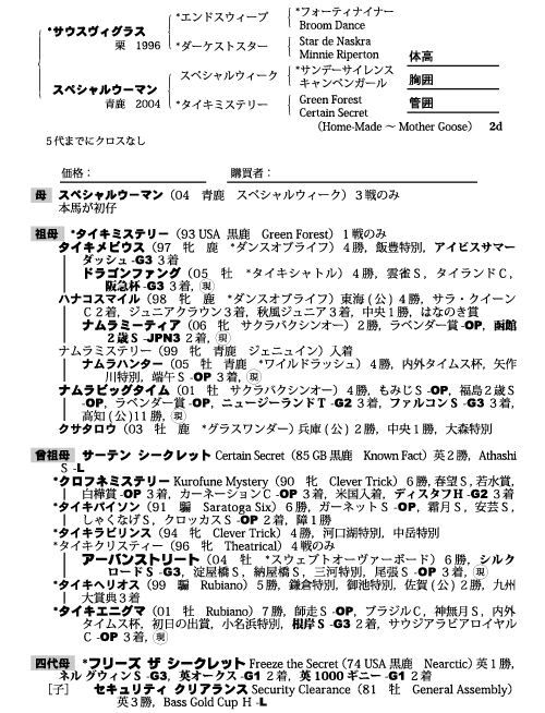 父サウスヴィグラス 母スペシャルウーマン(母父スペシャルウィーク)
