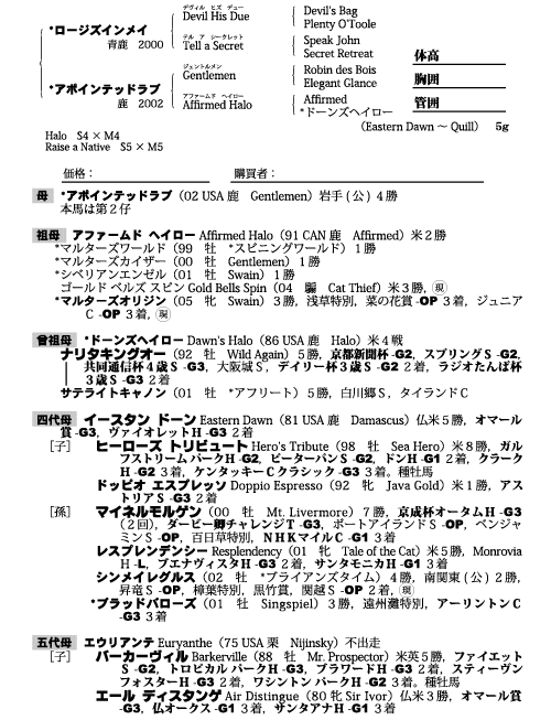 父ロージズインメイ 母アポインテッドラブ(母父Gentlemen)