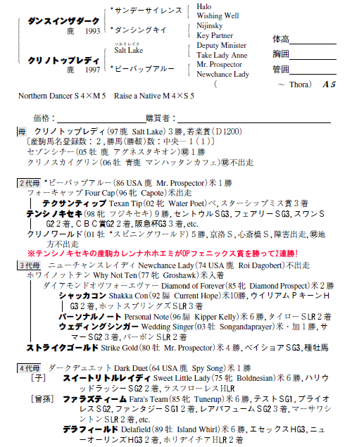 父ダンスインザダーク 母クリノトップレディ(母父Salt Lake)