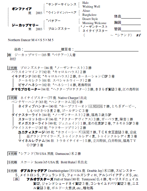 父オンファイア 母ジーカップマリー(母父バチアー)
