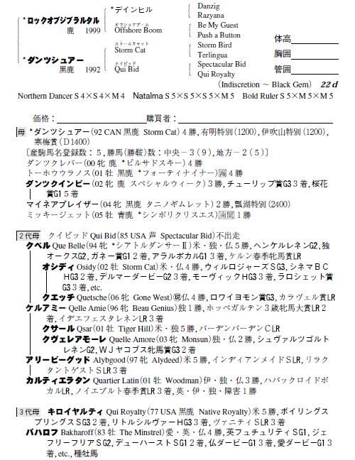 | 父ロックオブジブラルタル 母ダンツシュアー(母父Storm Cat) |