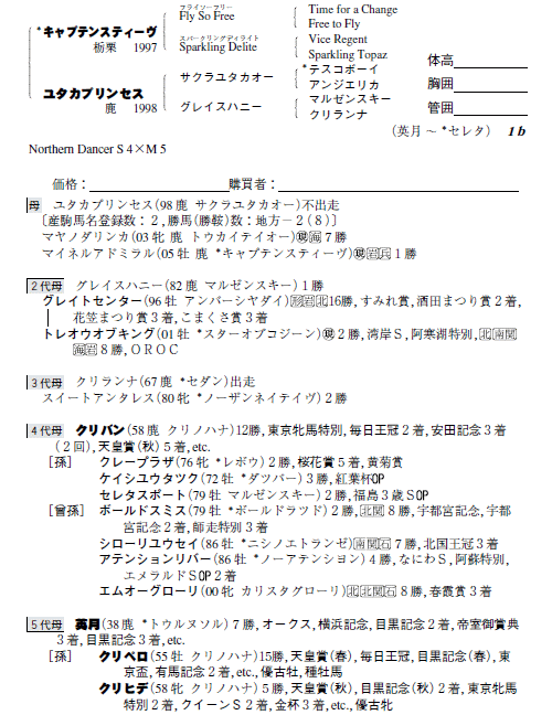 父キャプテンスティーヴ 母ユタカプリンセス(母父サクラユタカオー)