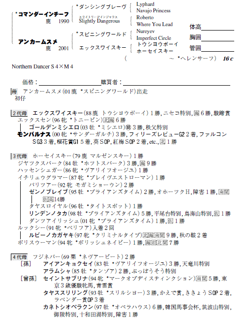 父コマンダーインチーフ 母アンカームスメ(母父スピニングワールド)