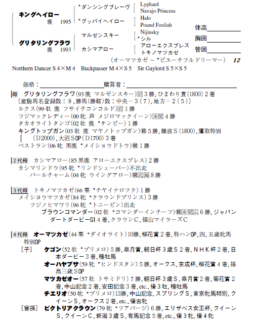父キングヘイロー 母グリタリングフラワ(母父マルゼンスキー)