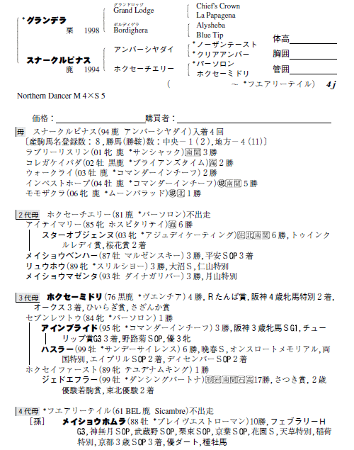父グランデラ 母スナークルピナス(母父アンバーシャダイ)