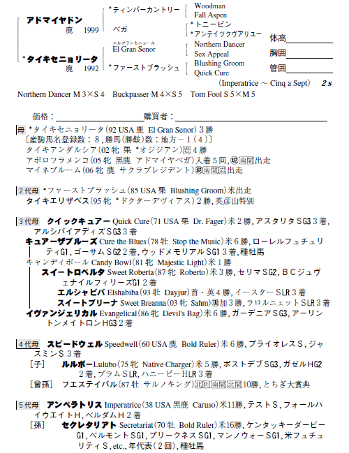 父アドマイヤドン 母タイキセニョリータ(母父El Gran Senor)