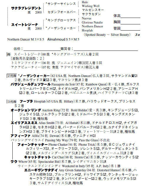 父サクラプレジデント 母スイートレジーナ(母父キンググローリアス)