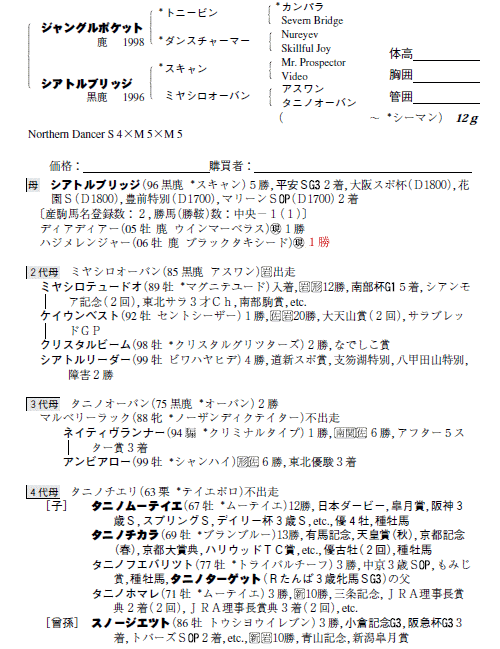 父ジャングルポケット 母シアトルブリッジ(母父スキャン)