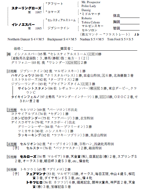 父スターリングローズ 母イシノエスパー(母父セレスティアルストーム)