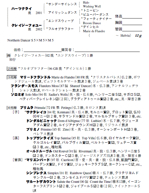 父ハーツクライ 母クレイジーフォユー(母父エンドスウィープ)