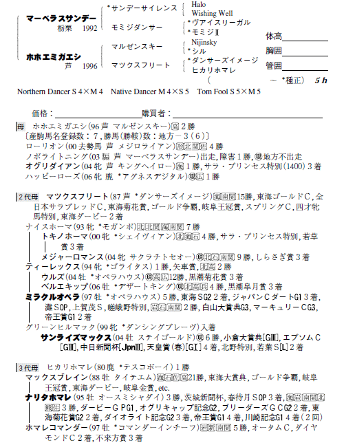 父マーベラスサンデー 母ホホエミガエシ(母父マルゼンスキー)