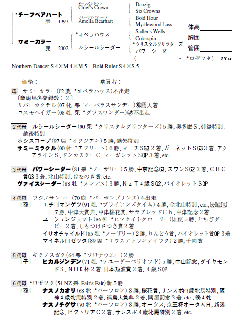 父チーフベアハート 母サミーカラー(母父オペラハウス)