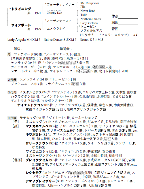 父トワイニング 母フォアボード(母父ノーザンテースト)