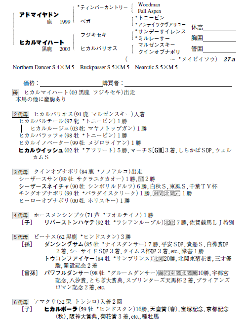 父アドマイヤドン 母ヒカルマイハート(母父フジキセキ)