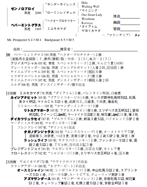 父ゼンノロブロイ 母ペパーミントグラス(母父ヘクタープロテクター)