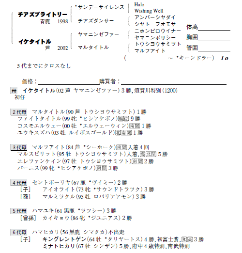 父チアズブライトリー 母イケタイトル(母父ヤマニンゼファー)