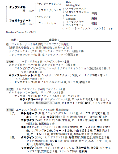 父デュランダル 母フォルトゥナート(母父オジジアン)