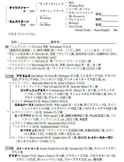 父ダイワメジャー 母ミムズリターン(母父Woodman)