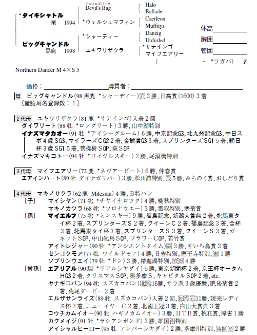 父タイキシャトル 母ビッグキャンドル(母父シャーディー)