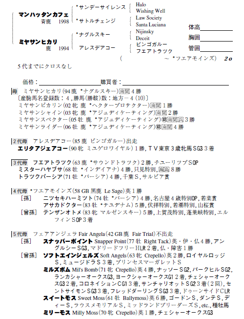 | 父マンハッタンカフェ 母ミヤサンヒカリ(母父ナグルスキー) |
