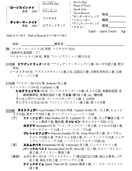 父ロージズインメイ 母ラッキーマーメイド(母父フジキセキ)