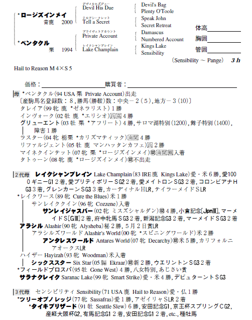| 父ロージズインメイ 母ペンタクル(母父Private Account) |