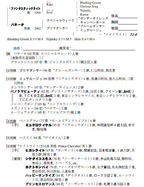 父ファンタスティックライト 母パキータ(母父スペシャルウィーク)